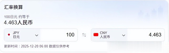 最后看看100日元,只能兑换多少人民币了?