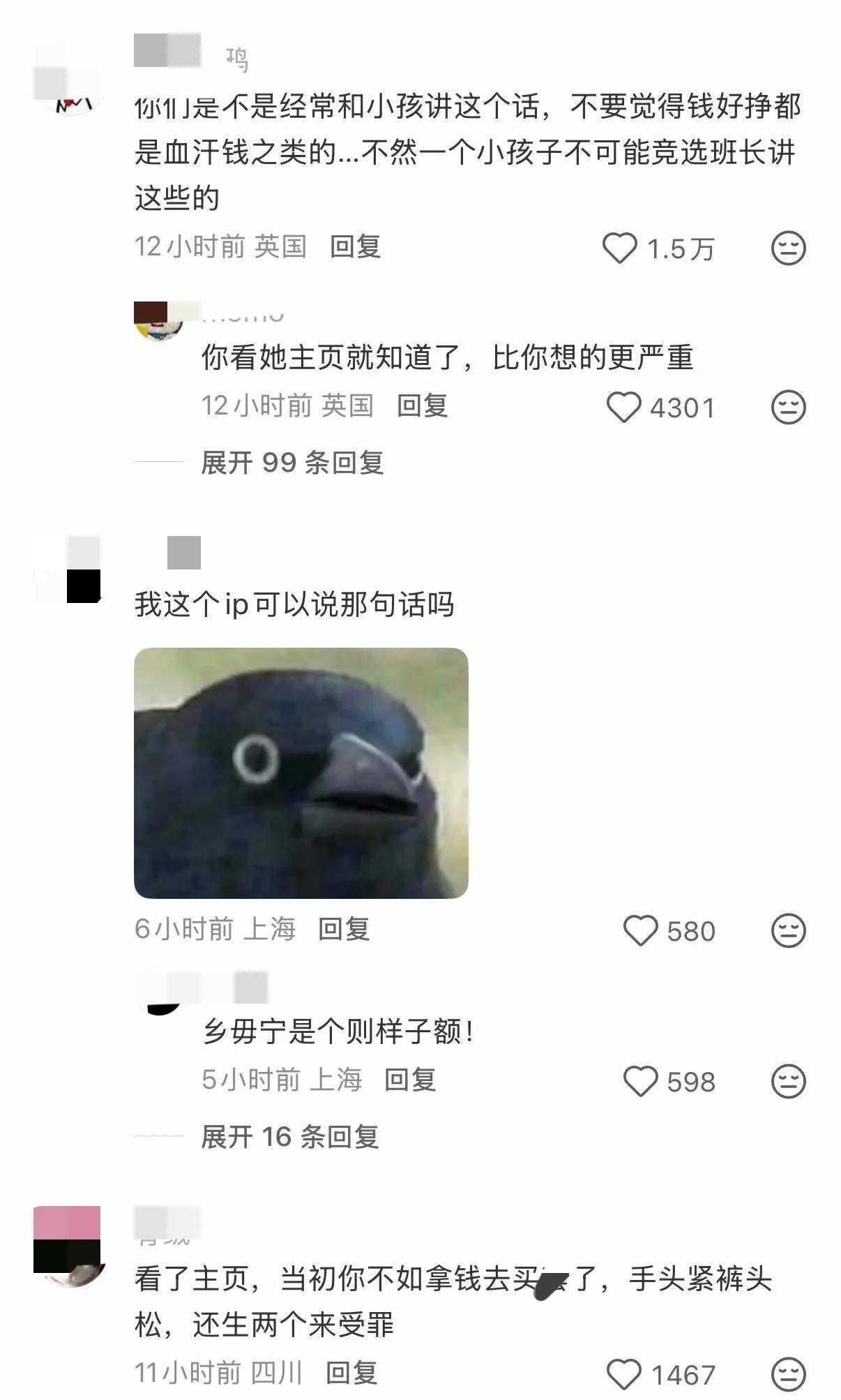 “你们是不是经常和小孩讲这个话,不要觉得钱好挣都是血汗钱之类的…不然一个小孩子不可能竞选班长讲这些的。”